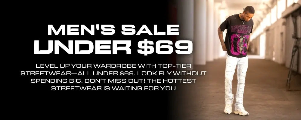 Many of the items in our collections have coordinating or matching pieces. See a bomber jacket you like and wonder what to wear with it? Find the perfect match in our drippy jeans for men. Want more stacked denim jeans? We have those too, along with coordinating hoodies, graphic tees and long-sleeve tees. Enjoy free shipping on orders over $125.