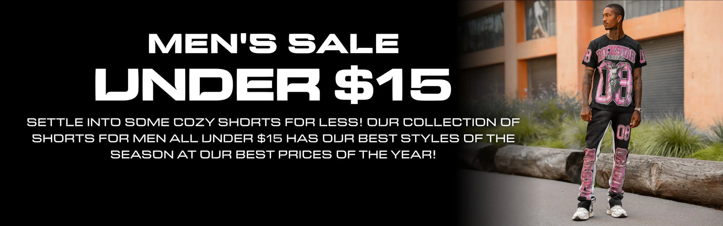 Find some of our best sales of the year, all under $15. This collection of Men's designer clothes ranges from graphic tees, hats, track jackets, to even hoodies. Take advantage of some of the best sales of the year today and cop a new streetwear style you won't find anywhere else. Reinvent your wardrobe today, and we'll cover shipping on qualifying orders over $125.