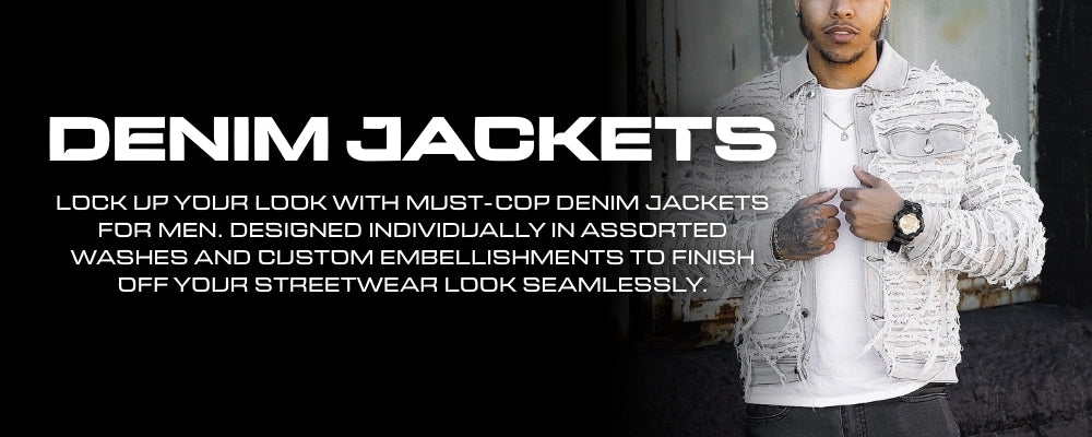 Many of Rockstar Original's designer denim jackets also come with matching or coordinating denim pants in similar patterns and styles. Get a pair of frayed denim jeans with your denim jacket and tag us in your favorite style on Instagram @rockstaroriginal!