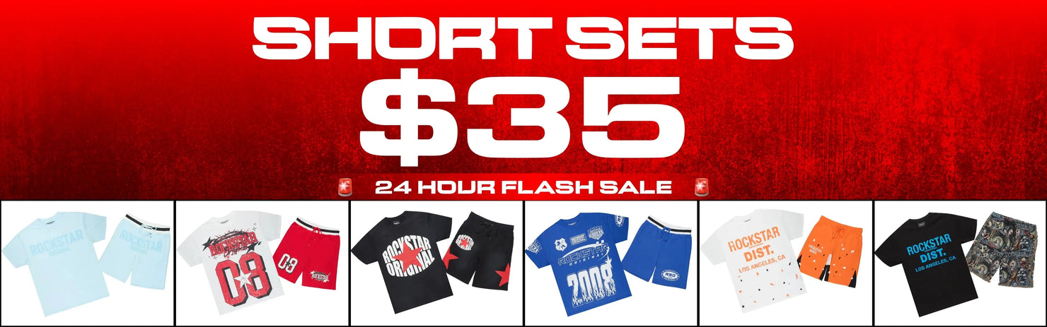 • Popularity: Our designer short sets are a matching short/shirt combo. Because these are so incredibly popular, we offer them in several unique styles, like our classic Rockstar Original print branding.