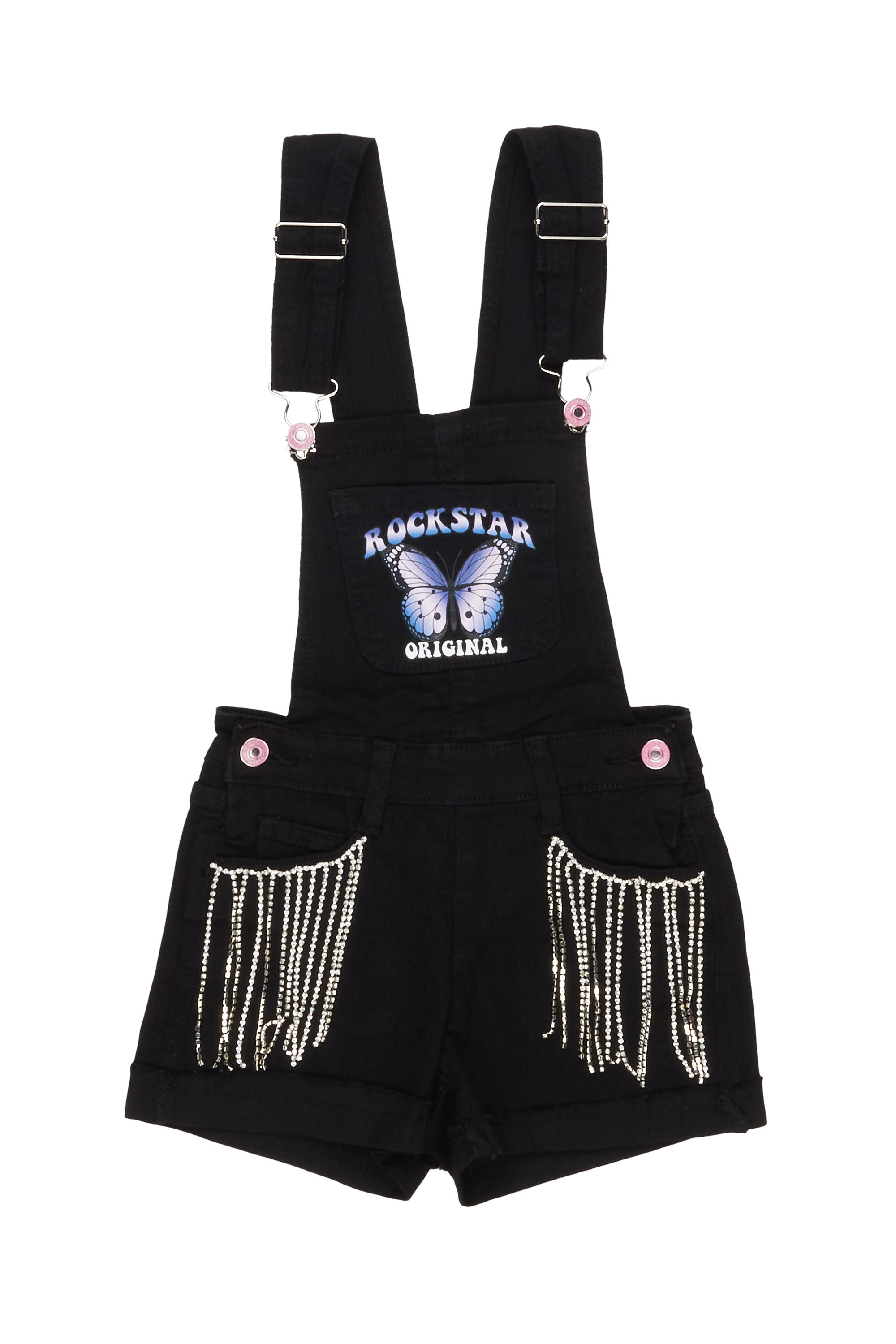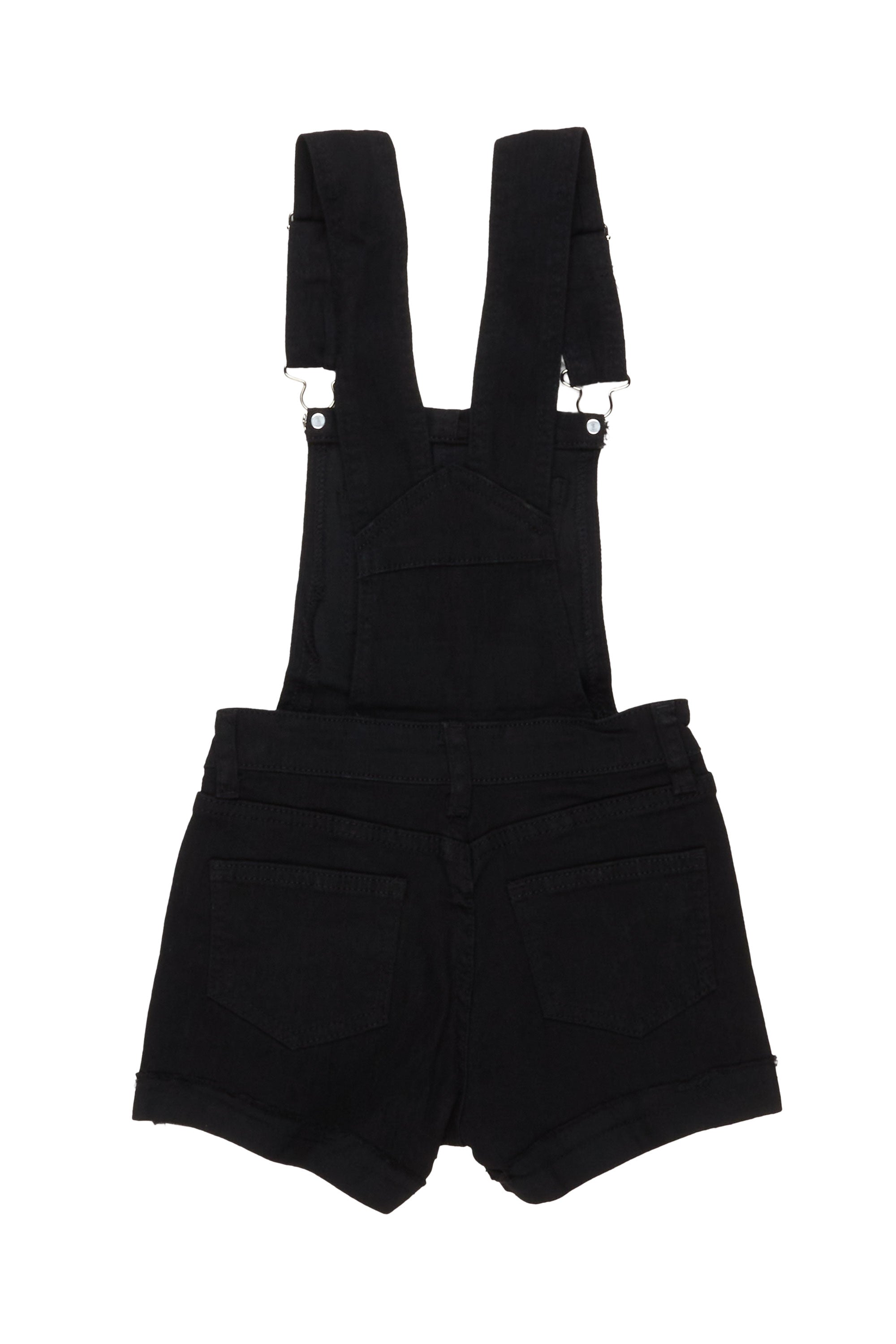 A contemporary pair of denim overalls for girls in black. Designed with premium stretch fabric and custom studded detailing for the perfect streetwear staple piece.
