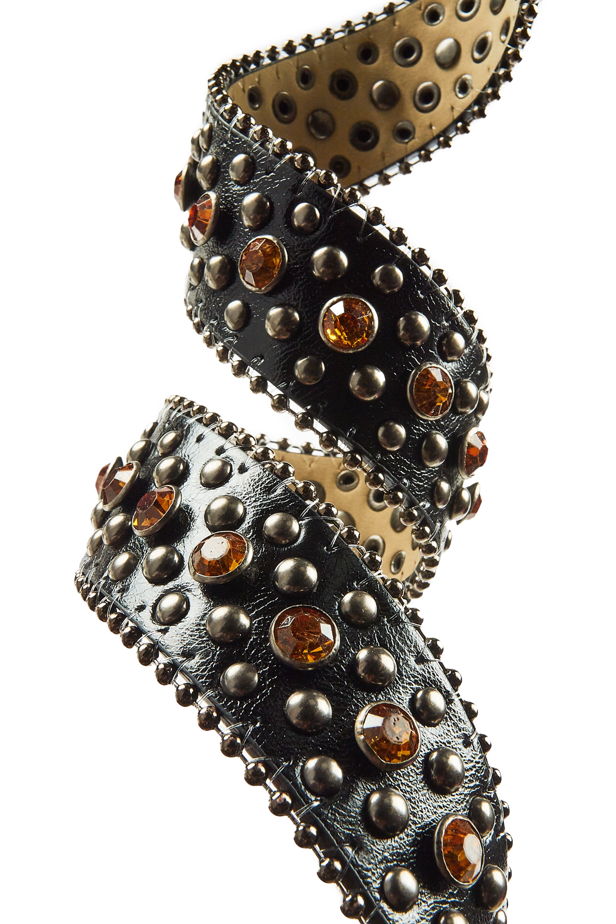 An elevated faux leather strap belt for men in black. Designed with custom embellishments and a stainless steel RSO buckle for a must-cop accessory.