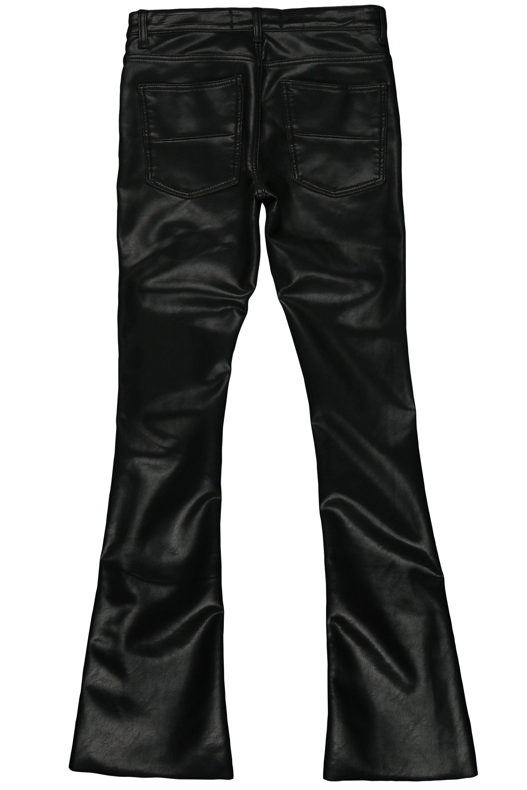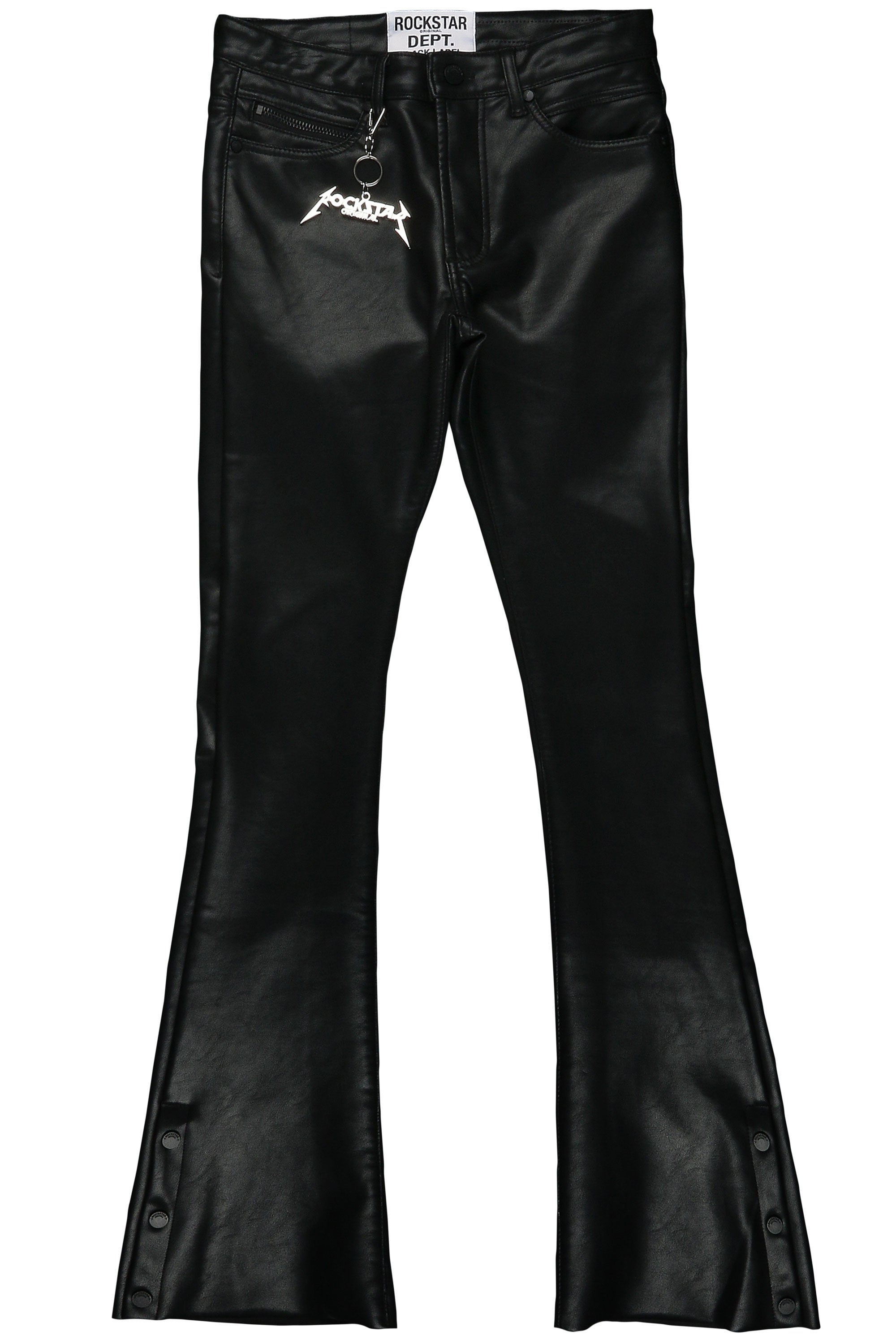 An elevated stacked flare jean for men in black. Designed with PU fabric and a custom Rockstar Original belt loop chain for a must-cop streetwear style.