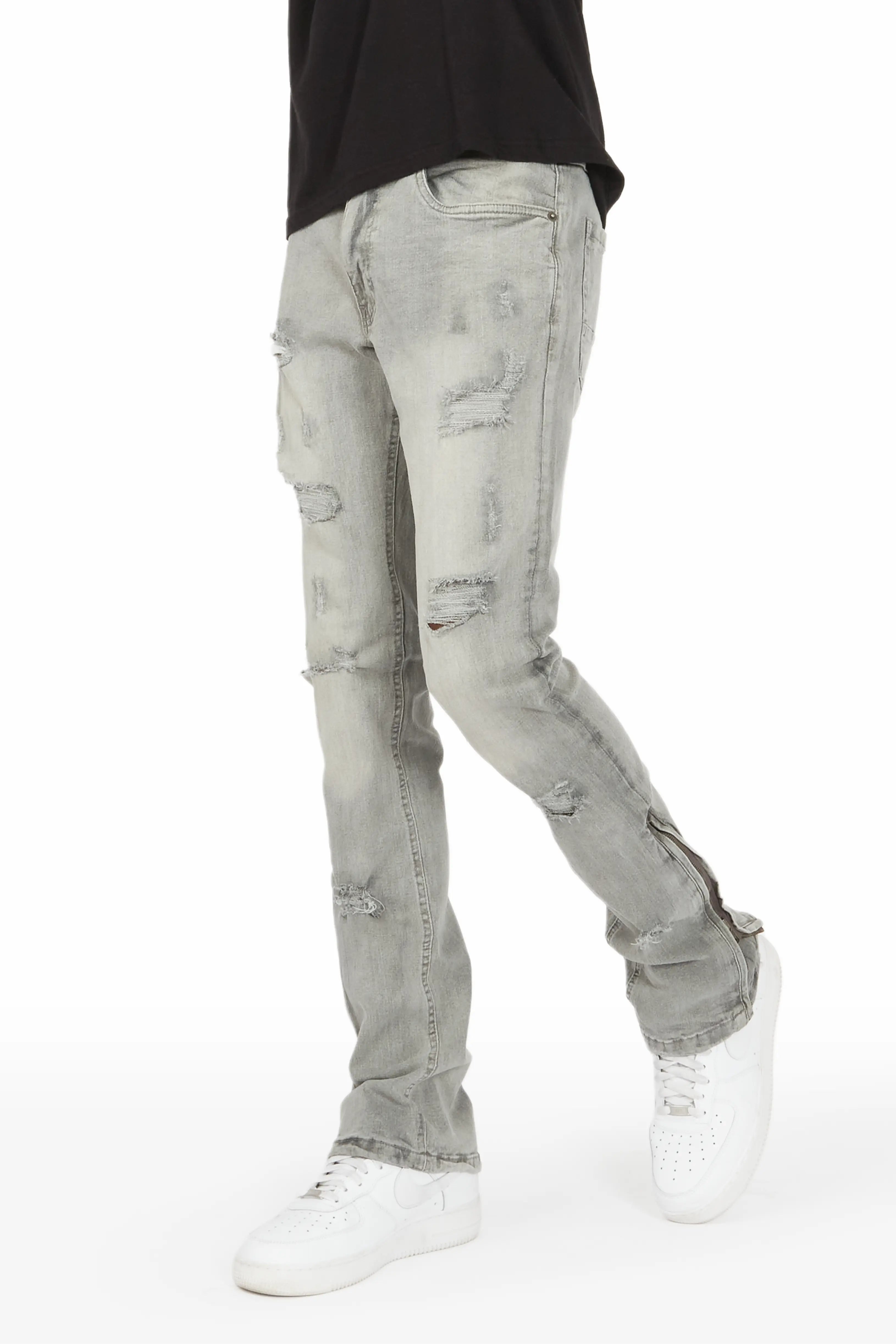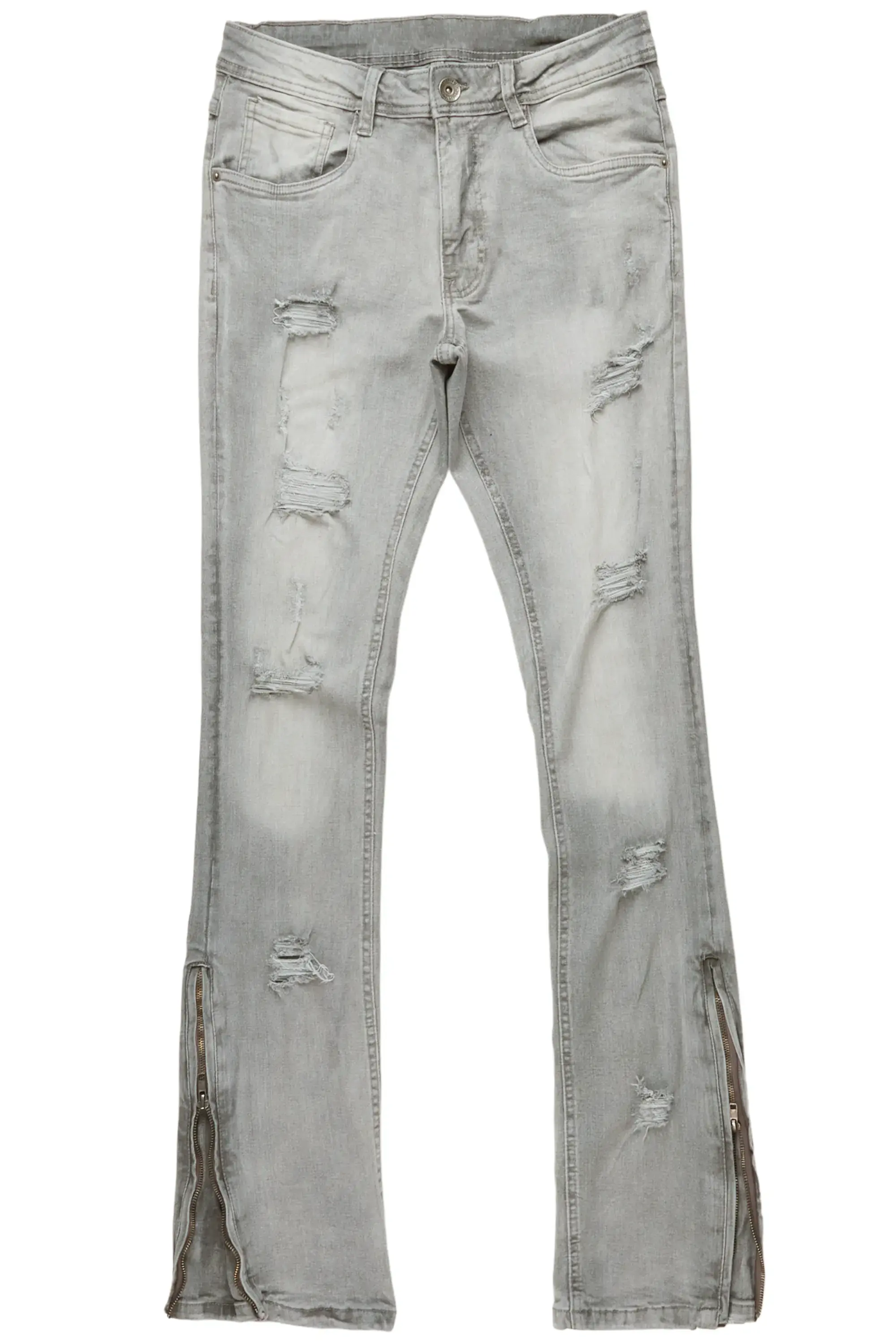 A contemporary stacked denim jean for men in light grey. Designed with organic cotton for the perfect streetwear style.