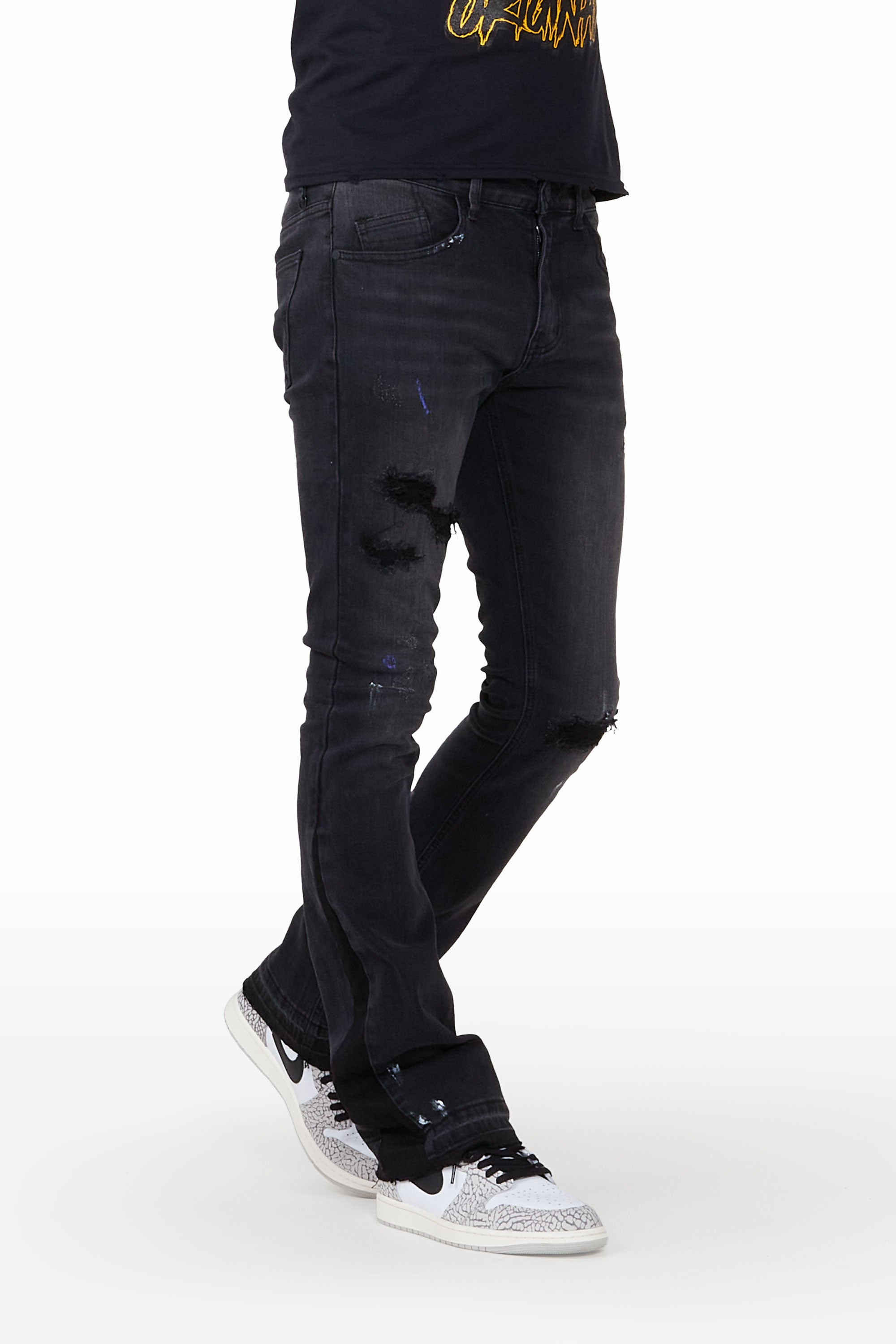 An urban stacked denim jean for men in black. Designed with organic cotton for the perfect streetwear style.