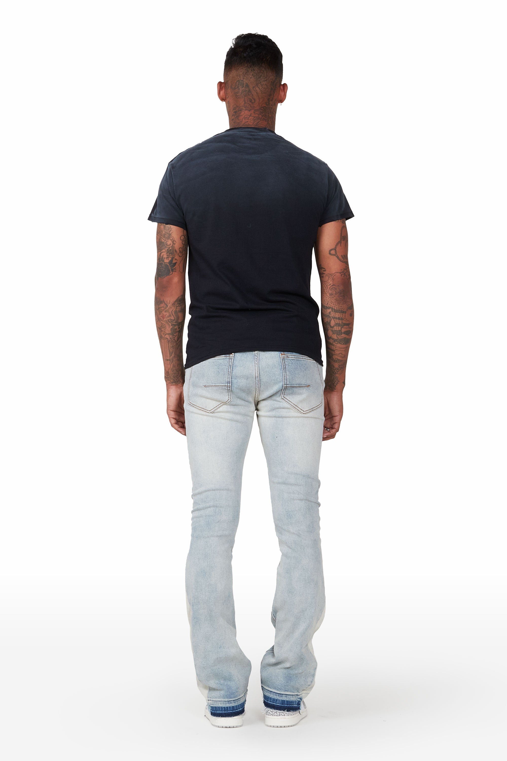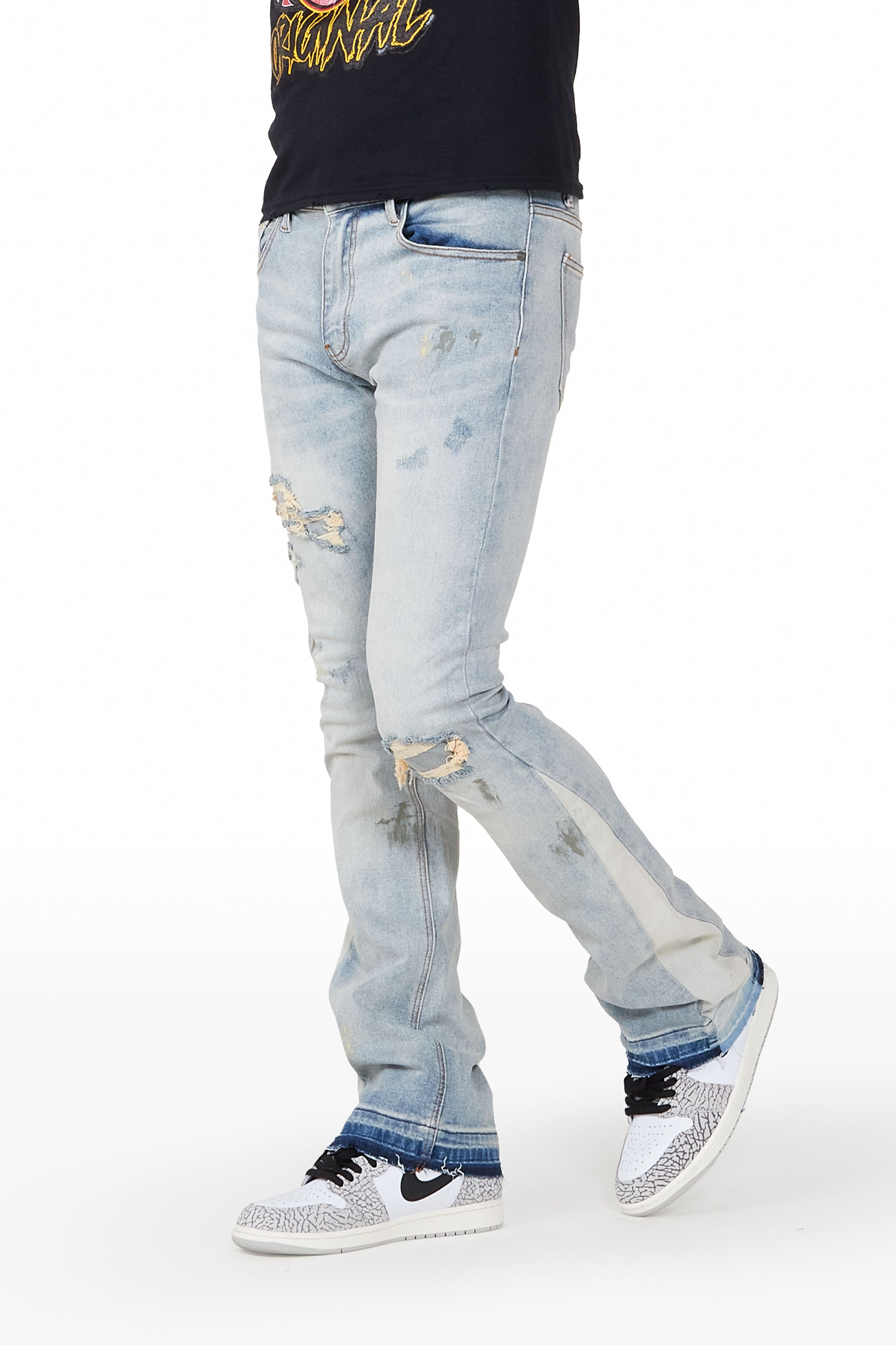 An urban stacked denim jean for men in blue. Designed with organic cotton for the perfect streetwear style.