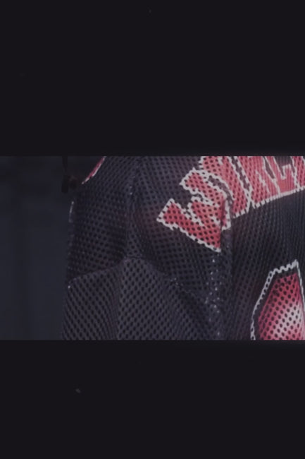 An urban athleisure mesh jersey for men in black. Designed with custom printed detailing and a relaxed-fit for a must-cop streetwear jersey.