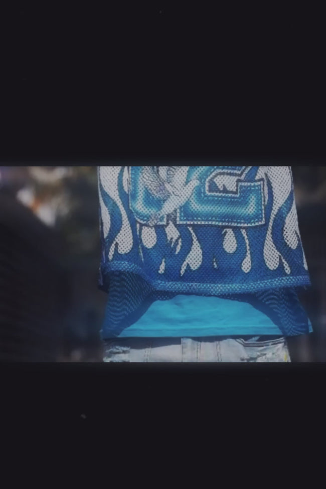An urban athleisure mesh jersey for men in royal blue. Designed with custom printed detailing and a relaxed-fit for a must-cop streetwear jersey.