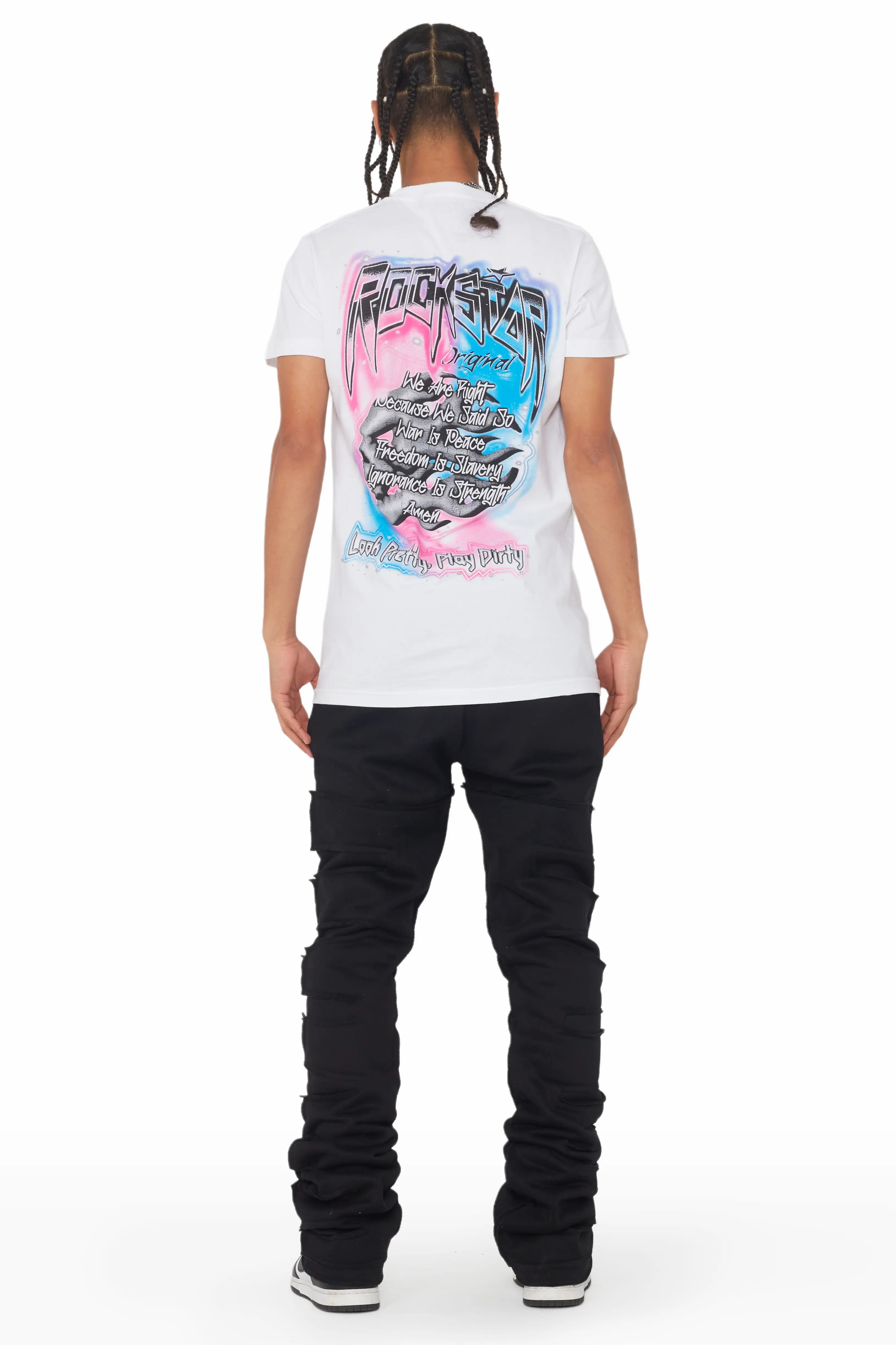 A pair of versatile stack track pants for men in black. Designed with ultra soft fabric and extra long legs for a dope streetwear style.
