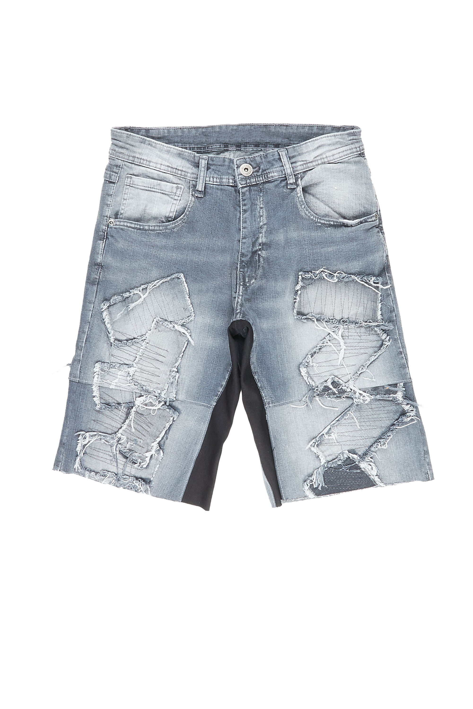 joss grey patchwork denim short