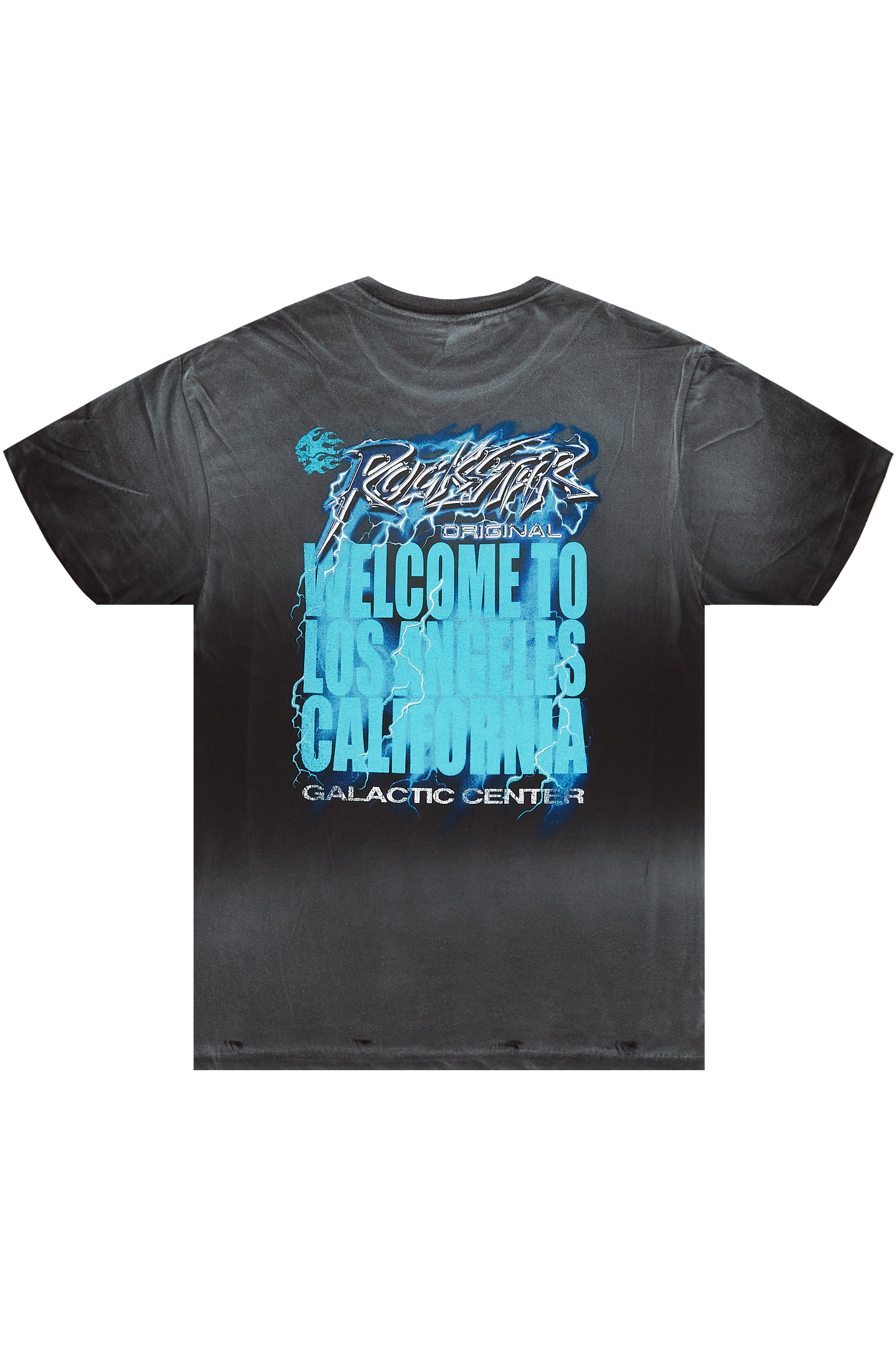 An urban streetwear t-shirt for men in black. Designed with organic cotton and a custom multi-color graphic for the perfect staple piece style.