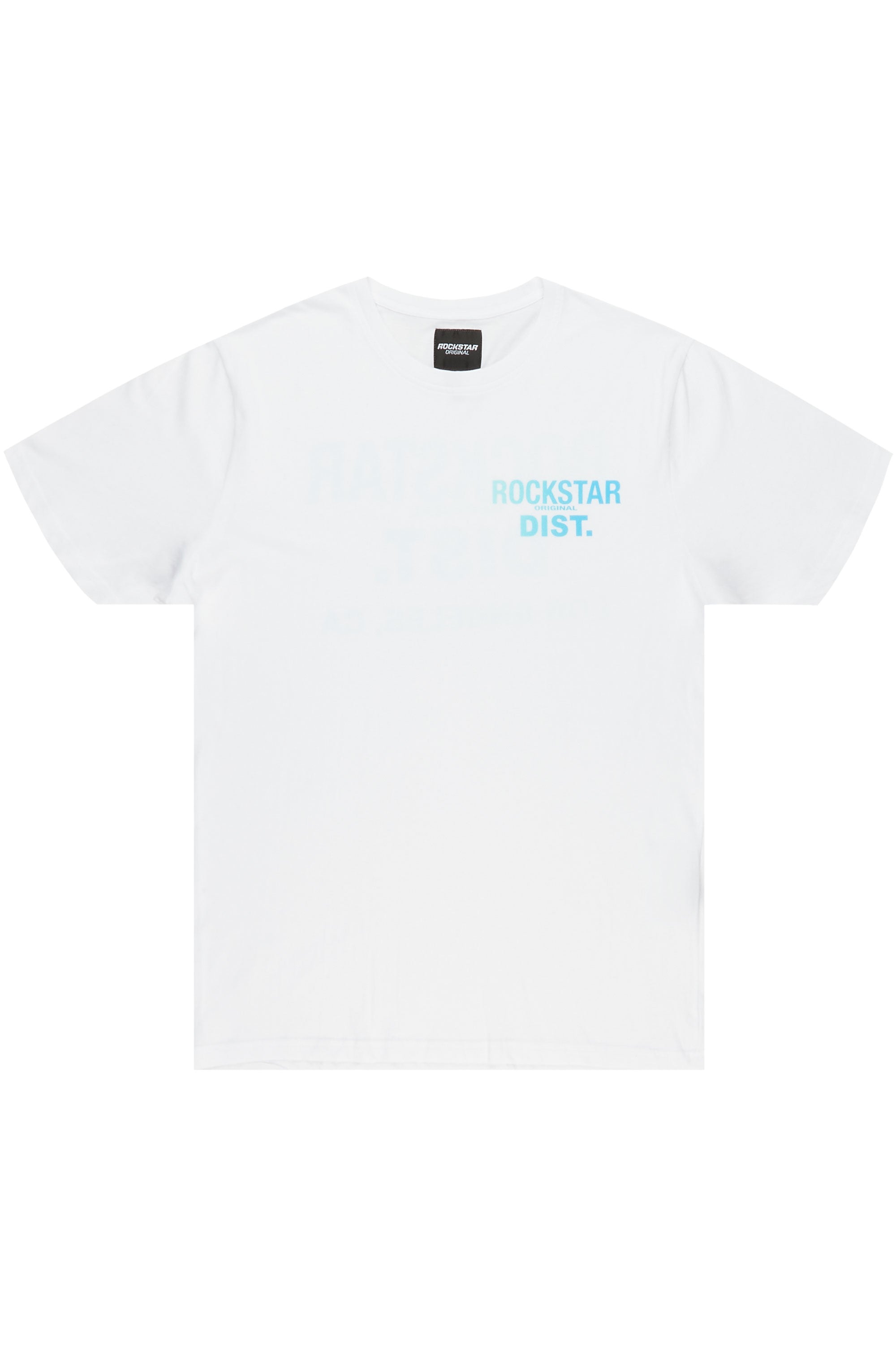 An urban streetwear-inspired t-shirt for men in white. Designed with organic cotton and a custom ombre logo for the perfect staple piece tee.
