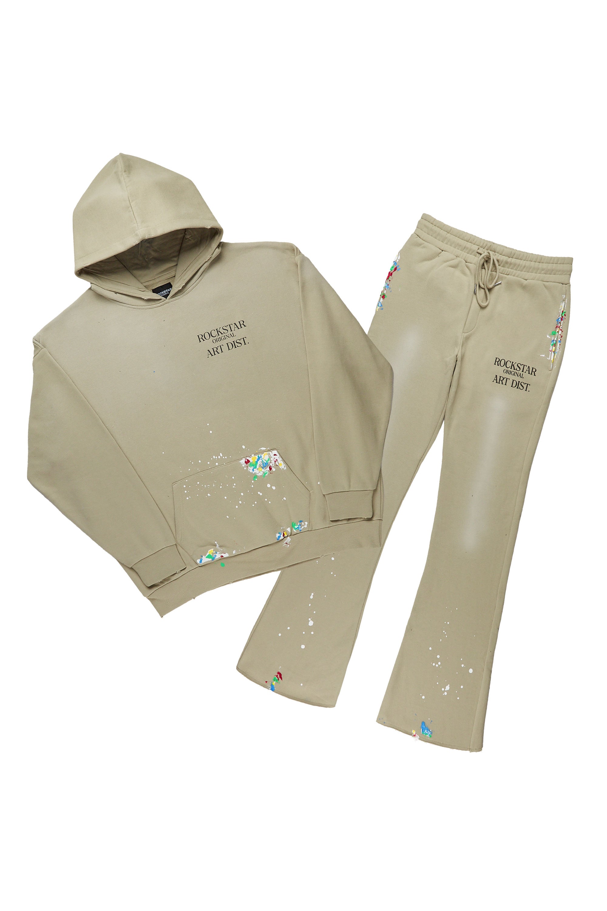 A two-piece hoodie track set for men in sage. Designed ultra soft organic cotton and custom paint splatter for the perfect everyday fit.
