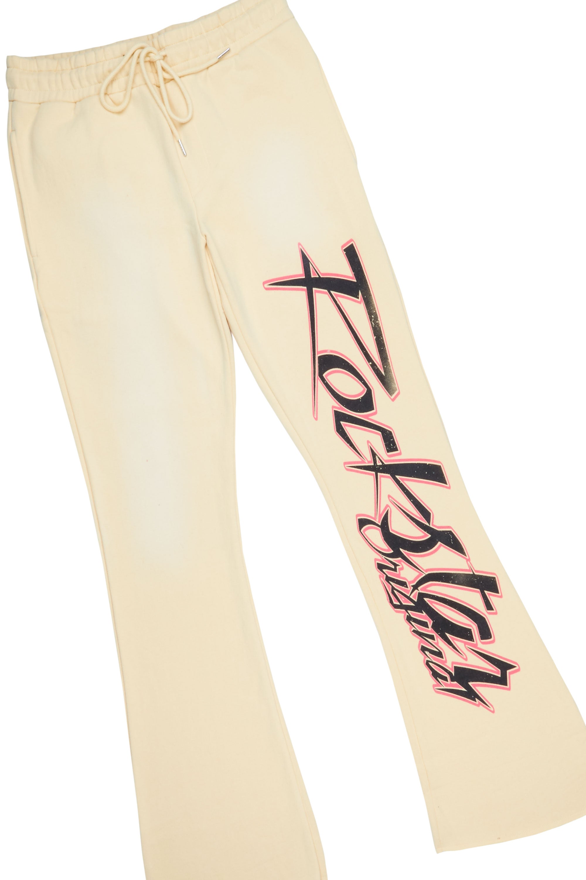 An urban two-piece hoodie and flare sweat pant set for men in yellow. Designed with organic cotton for the perfect tracksuit set.