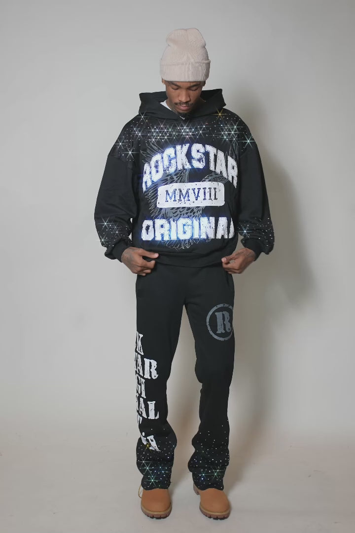 borya black rhinestone hoodie/stacked pant track set