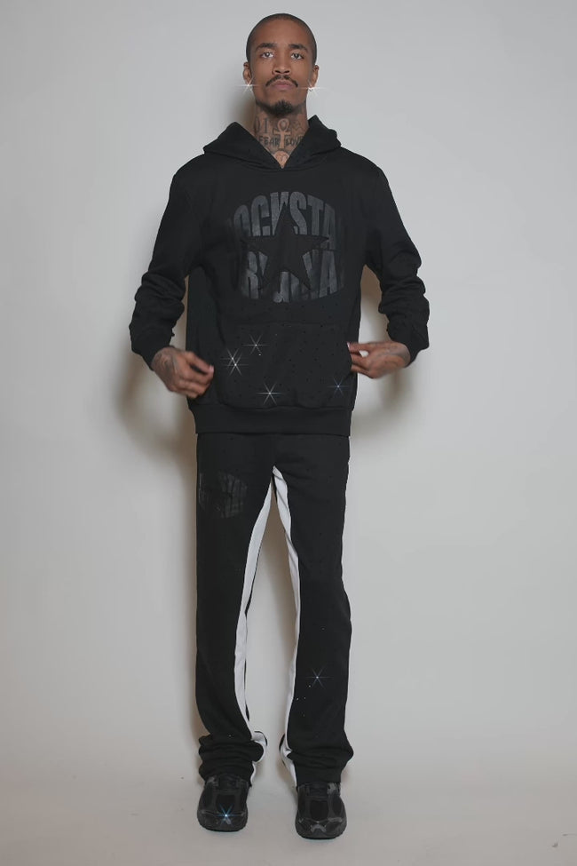 States Black Rhinestone Hoodie Stacked Flare Track Set