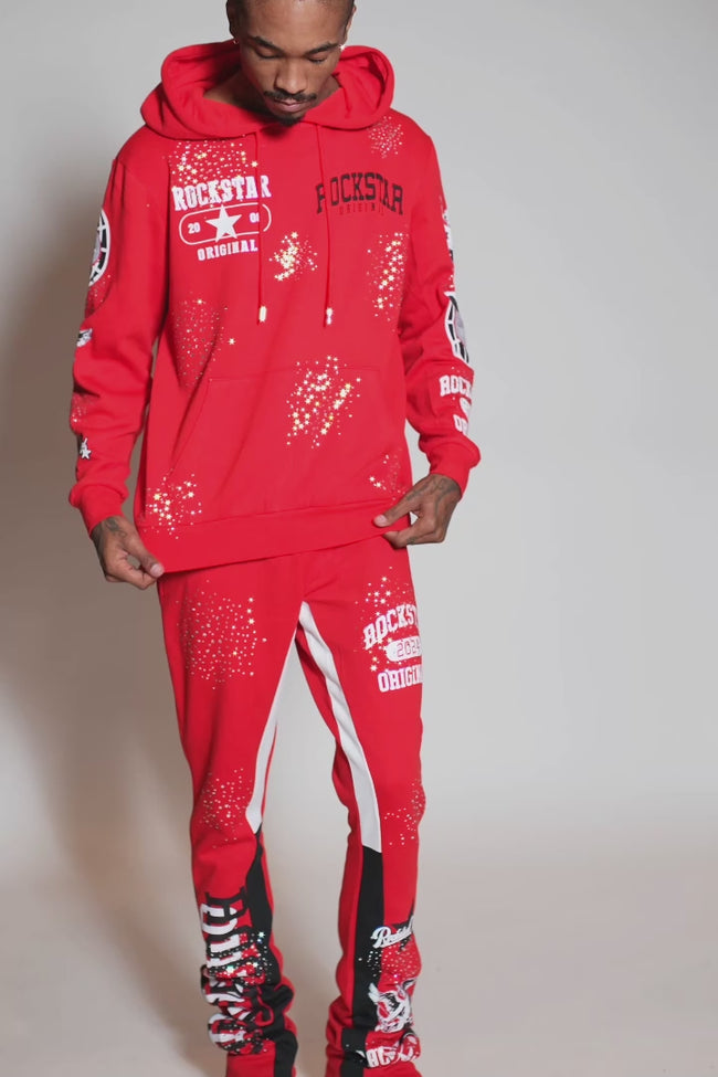 gutta 2.0 red rhinestone hoodie/stacked flare track set