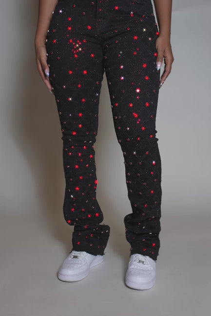 sareka black/red rhinestone stacked flare jean