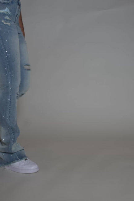 An urban medium wash stacked flare jean for women. Designed with premium fabric and extra long legs for a must-have streetwear style.