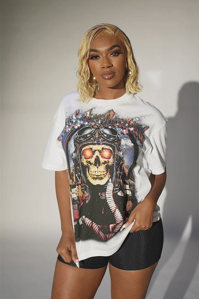 braniyah white rhinestone short sleeve tee